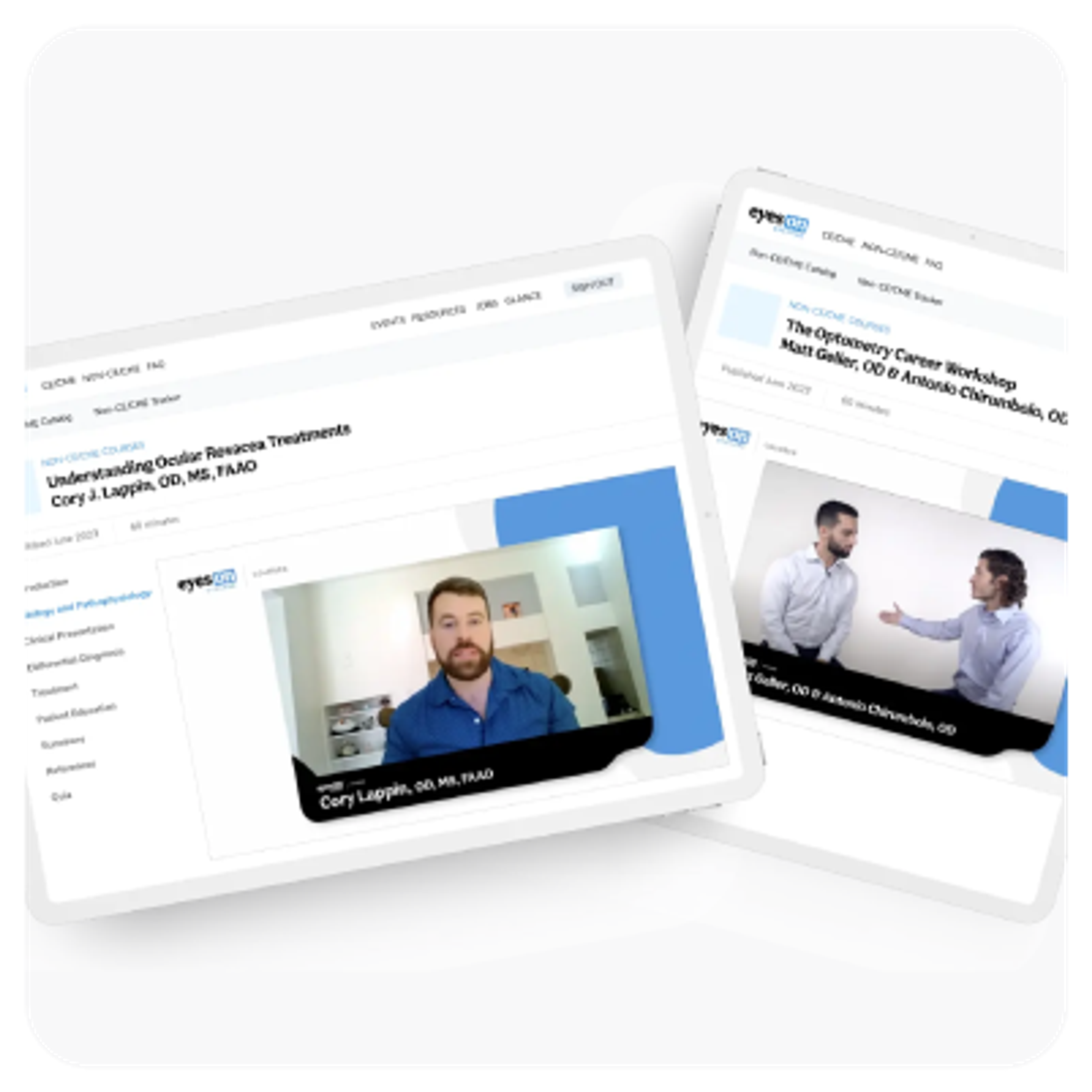 Designed for ambitious optometrists and ophthalmologists, Eyes On Eyecare Courses are must-watch, bite-sized lessons that let you go at your own pace. With fresh topics introduced monthly in both CE/CME and Non-CE/CME formats, you'll have access to top-tier education to ensure you stay ahead with the latest insights and techniques in eye care.